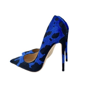 Женские туфли на шпильке, высокие туфли без застежек, нескользящая подошва, большие размеры 12 см/10 см/8 см, с узором из шерсти крупного рогатого скота, для весны