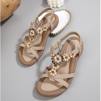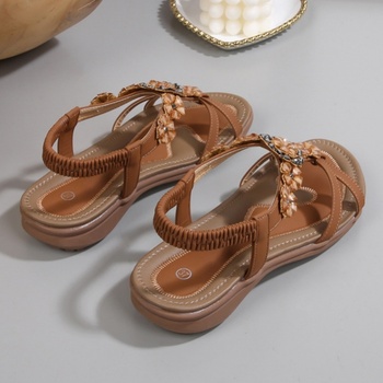 Sandalias cuadradas Retro bohemias con logotipo personalizado para mujer, plataforma romana con cuentas tejidas, aumento de altura, sin cordones para el verano, transpirables
